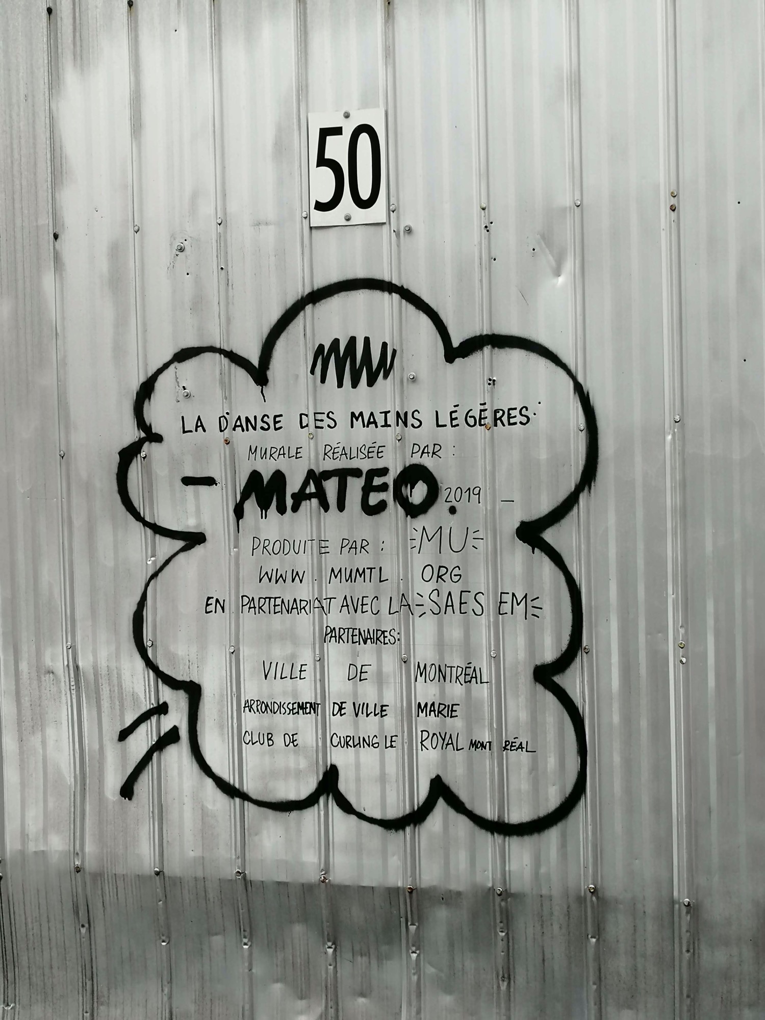 L’oeuvre est de type graffiti. Vous pouvez l’admirer dans la ville de Montréal en Canada et plus précisément ici : Victoria Gymnasium, Montreal, QC H3H 1J8, Canada.