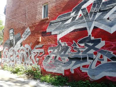 L'oeuvre est de type graffiti. Vous pouvez l'admirer dans la ville de Montréal en Canada et plus précisément ici : 802 Avenue Atwater, Montréal, QC H4C 2G9, Canada.