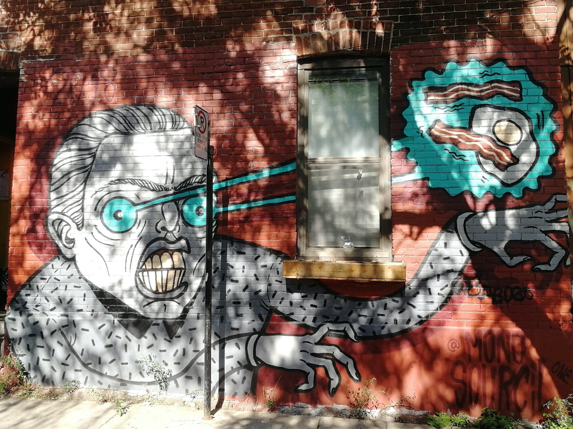 L’oeuvre est de type graffiti. Vous pouvez l’admirer dans la ville de Montréal en Canada et plus précisément ici : 3068 Rue Saint-Antoine O, Montréal, QC H4C 1A5, Canada.