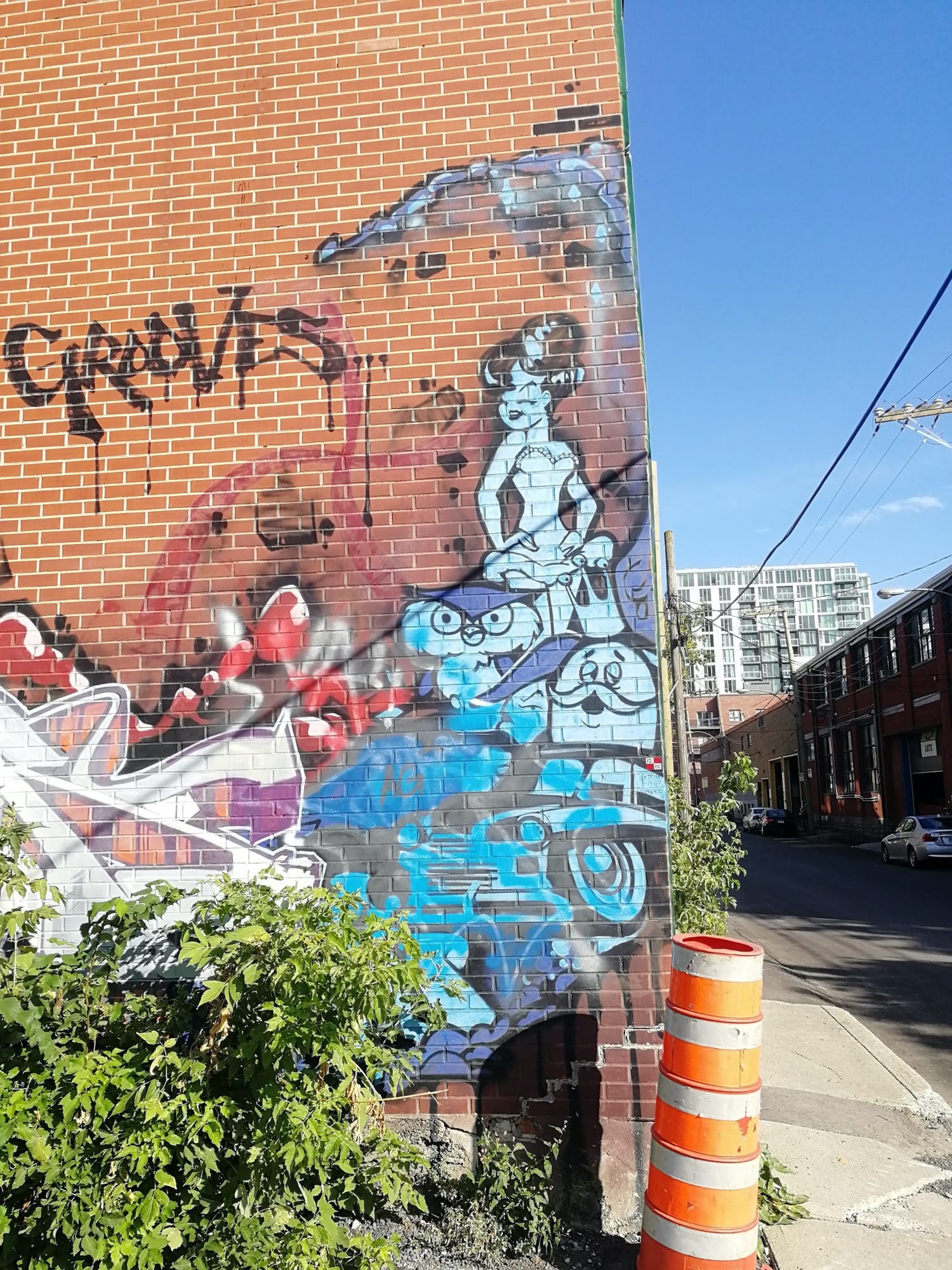 L’oeuvre est de type graffiti. Vous pouvez l’admirer dans la ville de Montréal en Canada et plus précisément ici : 322 Rue Murray, Montréal, QC H3C 2E2, Canada.