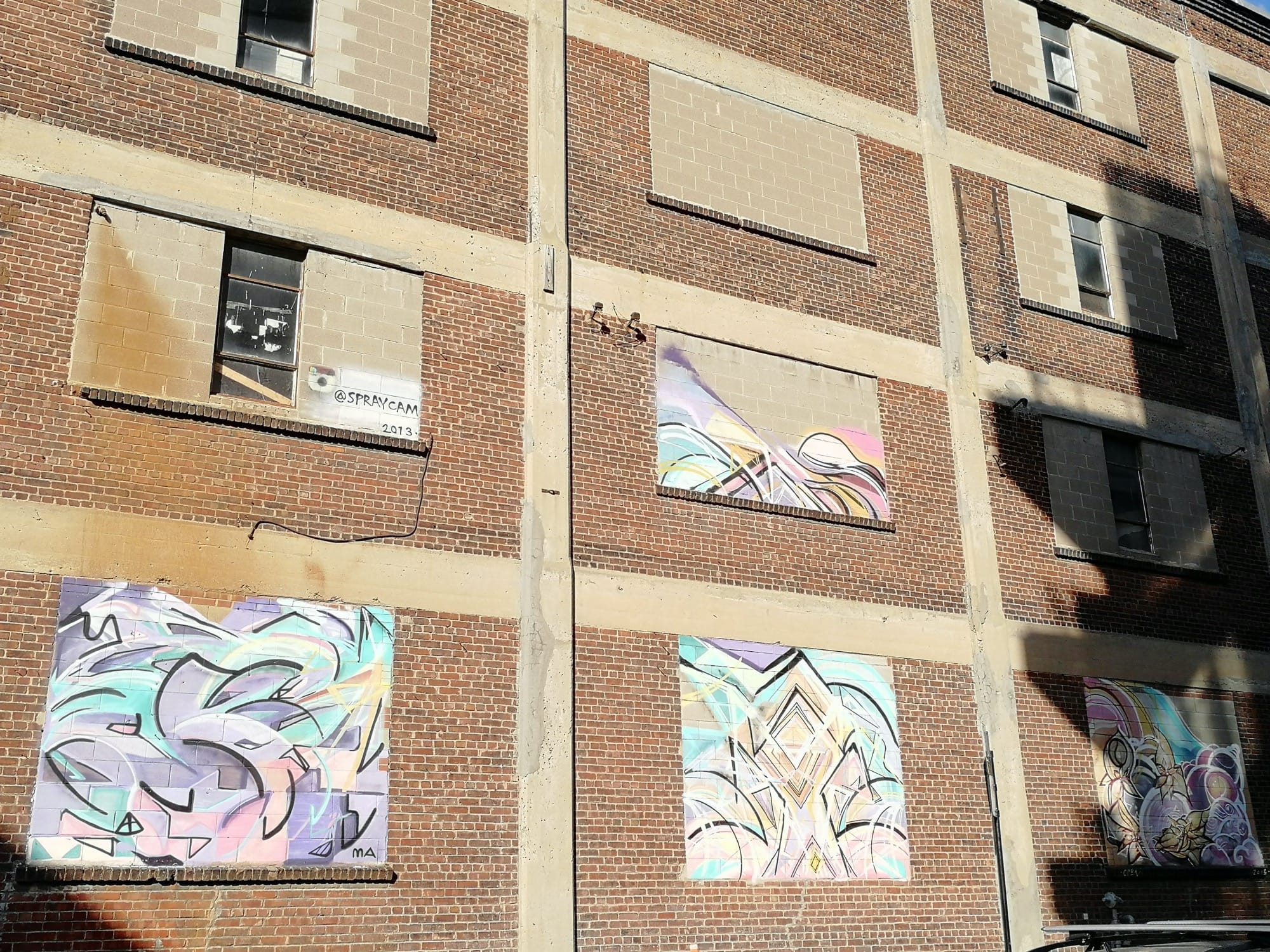 L’oeuvre est de type graffiti. Vous pouvez l’admirer dans la ville de Montréal en Canada et plus précisément ici : 1000 Rue Ottawa, Montréal, QC H3C 0P3, Canada.