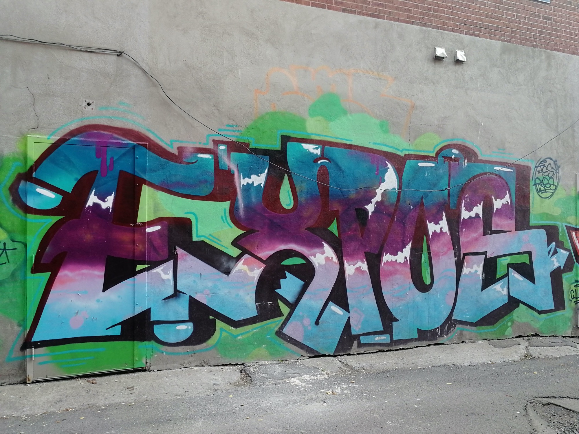 L’oeuvre est de type graffiti. Vous pouvez l’admirer dans la ville de Montréal en Canada et plus précisément ici : 1265 Rue Généreux, Montréal, QC H2J 1V7, Canada.
