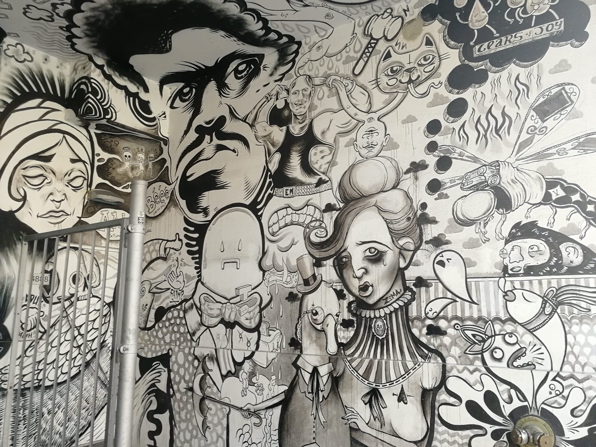 L’oeuvre est de type graffiti. Vous pouvez l’admirer dans la ville de Montréal en Canada et plus précisément ici : 4873 Boul St-Laurent, Montréal, QC H2T 1R6, Canada.