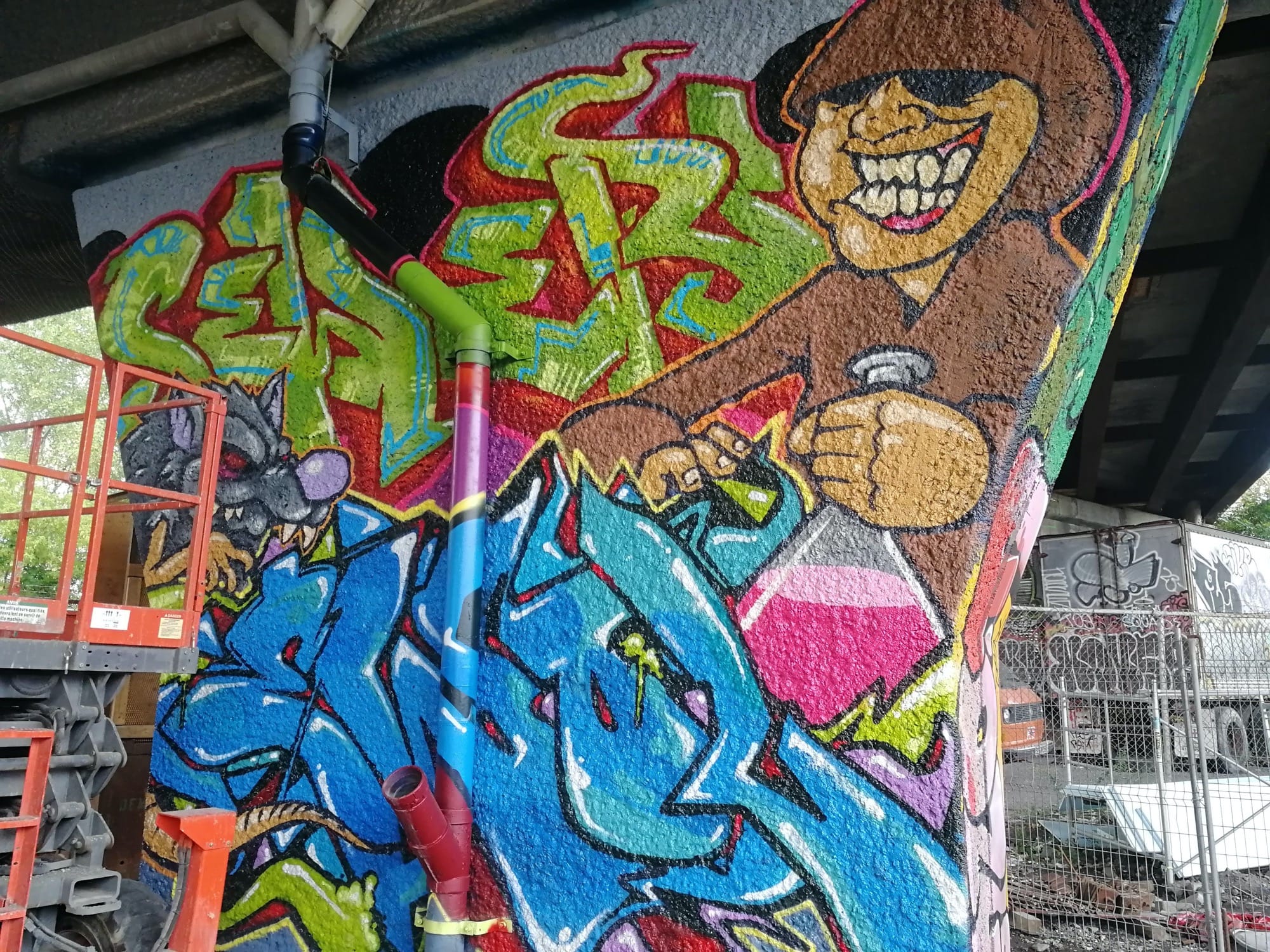 L’oeuvre est de type graffiti. Vous pouvez l’admirer dans la ville de Montréal en Canada et plus précisément ici : 40 Rue Bernard E, Montréal, QC H2T 1S9, Canada.