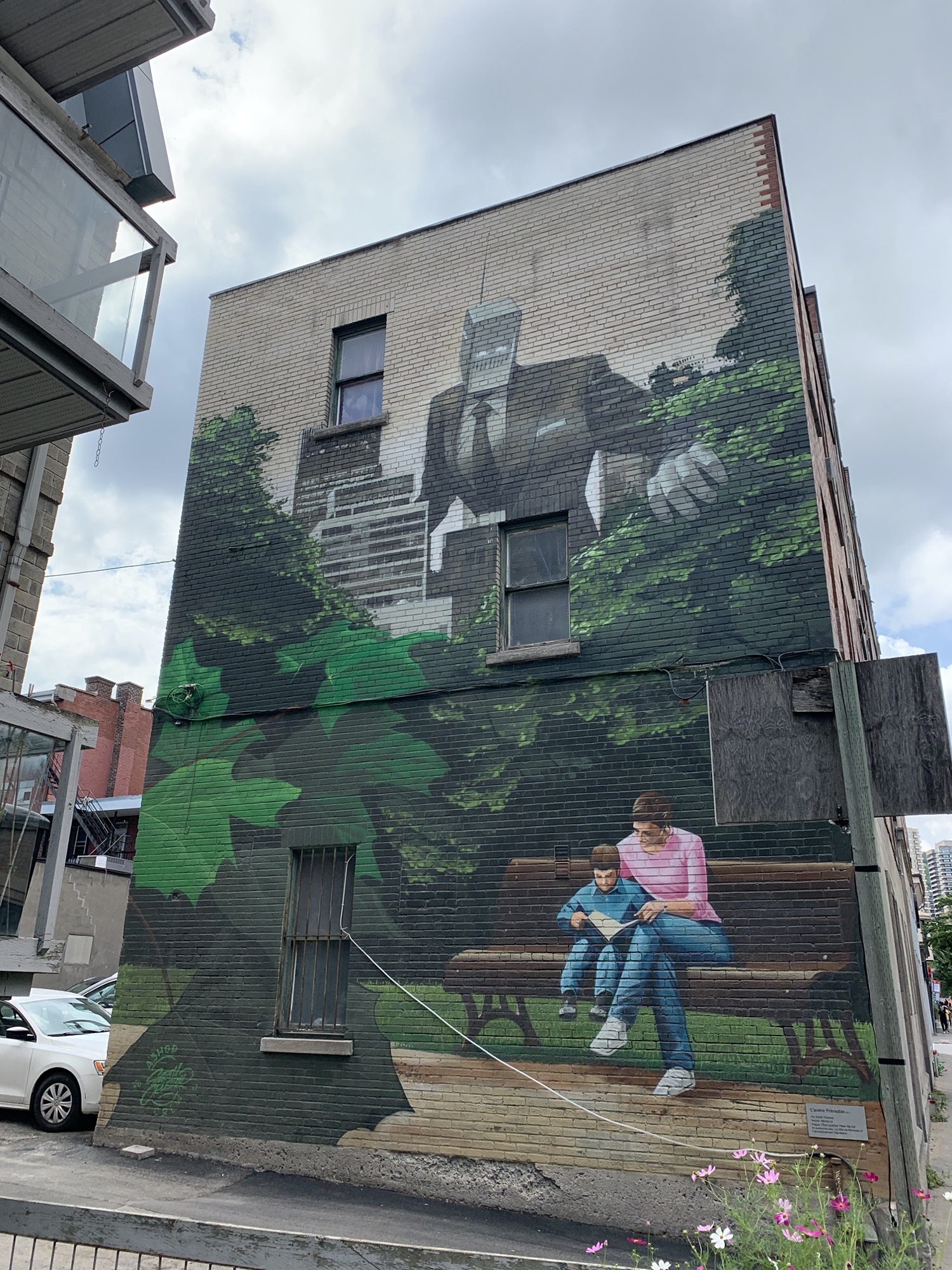 L’oeuvre L'avenir prévisible est de type graffiti. Vous pouvez l’admirer dans la ville de Montréal en Canada et plus précisément ici : 1272 Rue Saint Mathieu, Montréal, QC H3H 2H8, Canada.