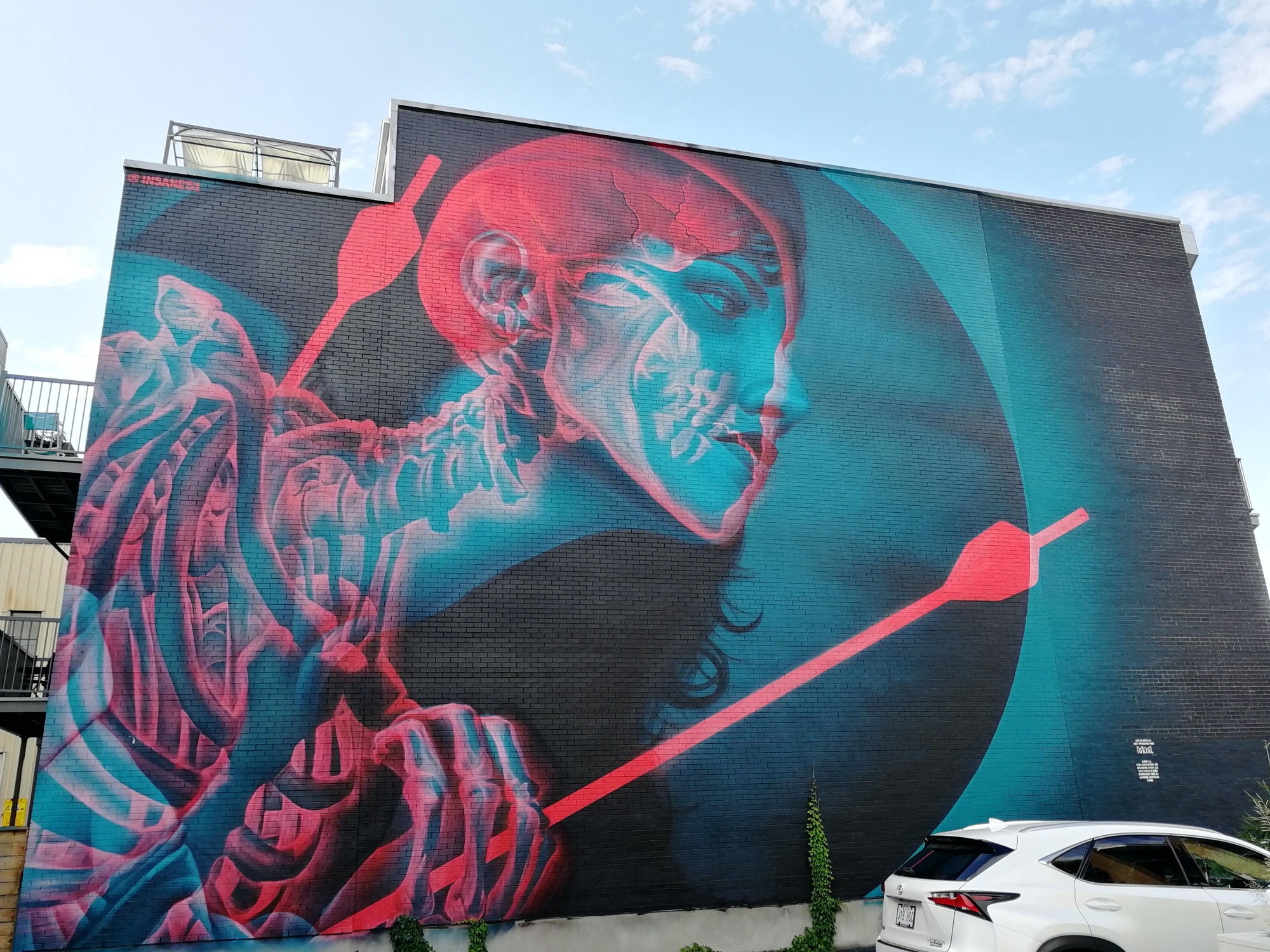L’oeuvre est de type graffiti. Vous pouvez l’admirer dans la ville de Montréal en Canada et plus précisément ici : 432 Rue Gilford, Montréal, QC H2J 1N2, Canada.