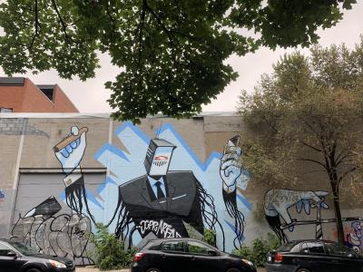 L'oeuvre est de type graffiti. Vous pouvez l'admirer dans la ville de Montréal en Canada et plus précisément ici : 4096 Rue Clark, Montréal, QC H2W 1W9, Canada.