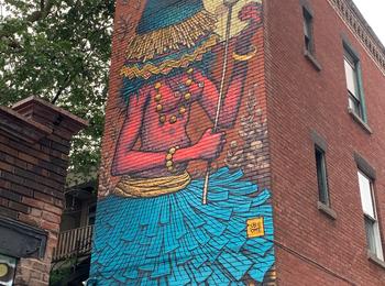 L’oeuvre est de type graffiti. Vous pouvez l’admirer dans la ville de Montréal en Canada et plus précisément ici : 4096 Rue Clark, Montréal, QC H2W 1W9, Canada.