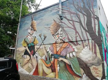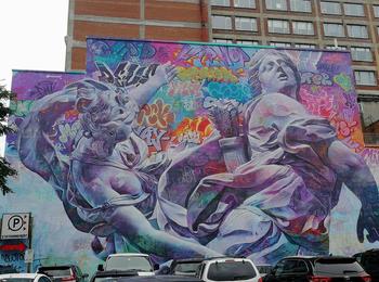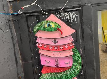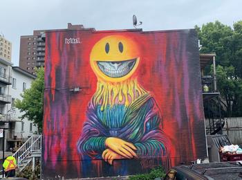 L’oeuvre est de type graffiti. Vous pouvez l’admirer dans la ville de Montréal en Canada et plus précisément ici : 3522 Rue Saint-Dominique, Montréal, QC H2X 2X4, Canada.