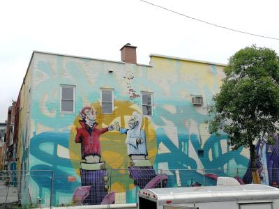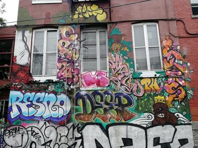L'oeuvre est de type graffiti. Vous pouvez l'admirer dans la ville de Montréal en Canada et plus précisément ici : 3830 Boul St-Laurent, Montréal, QC H2W 1X6, Canada.