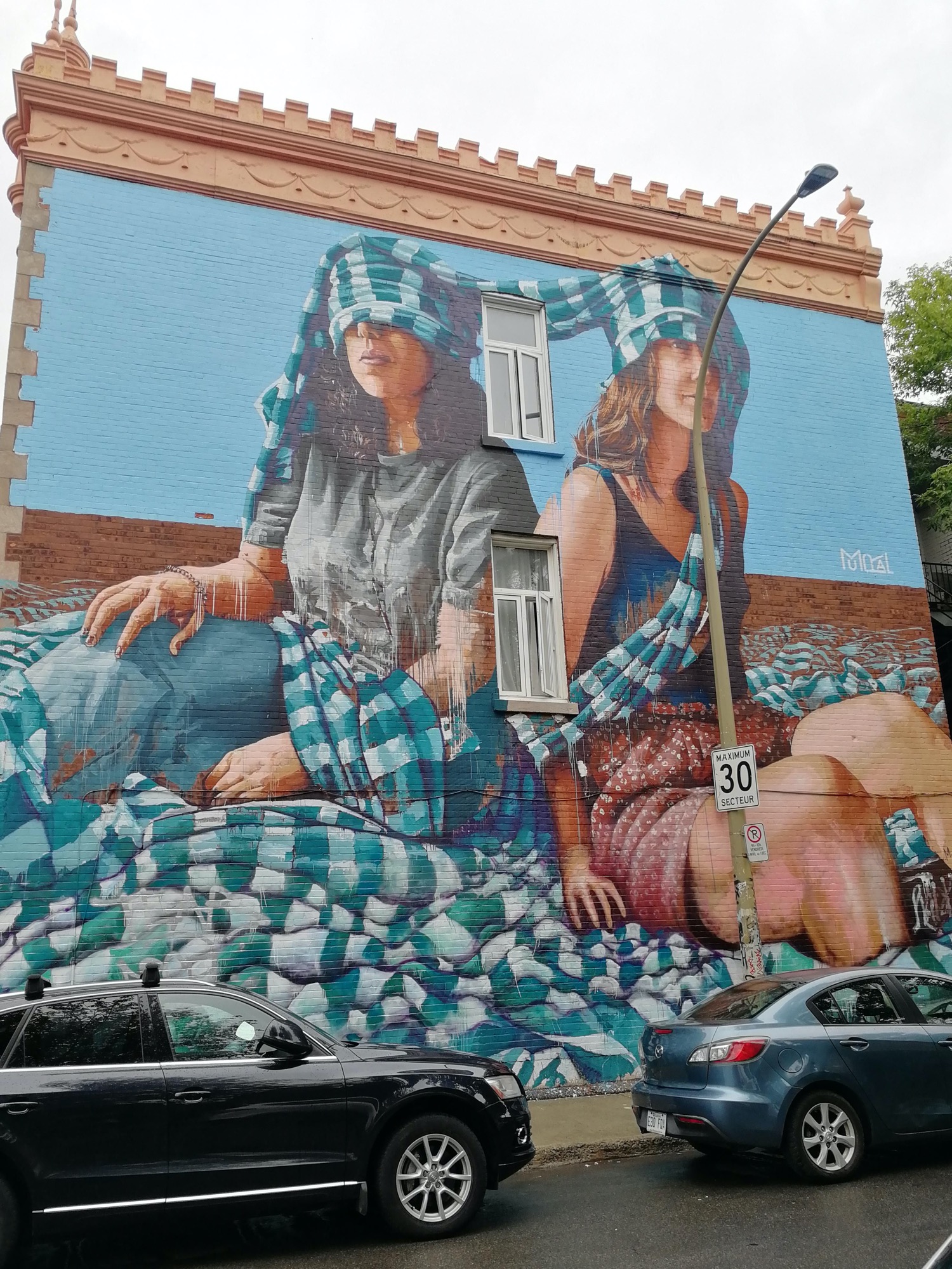 L’oeuvre est de type graffiti. Vous pouvez l’admirer dans la ville de Montréal en Canada et plus précisément ici : des Pins / de l'Hôtel-de-Ville, Montréal, QC H2X 3A2, Canada.