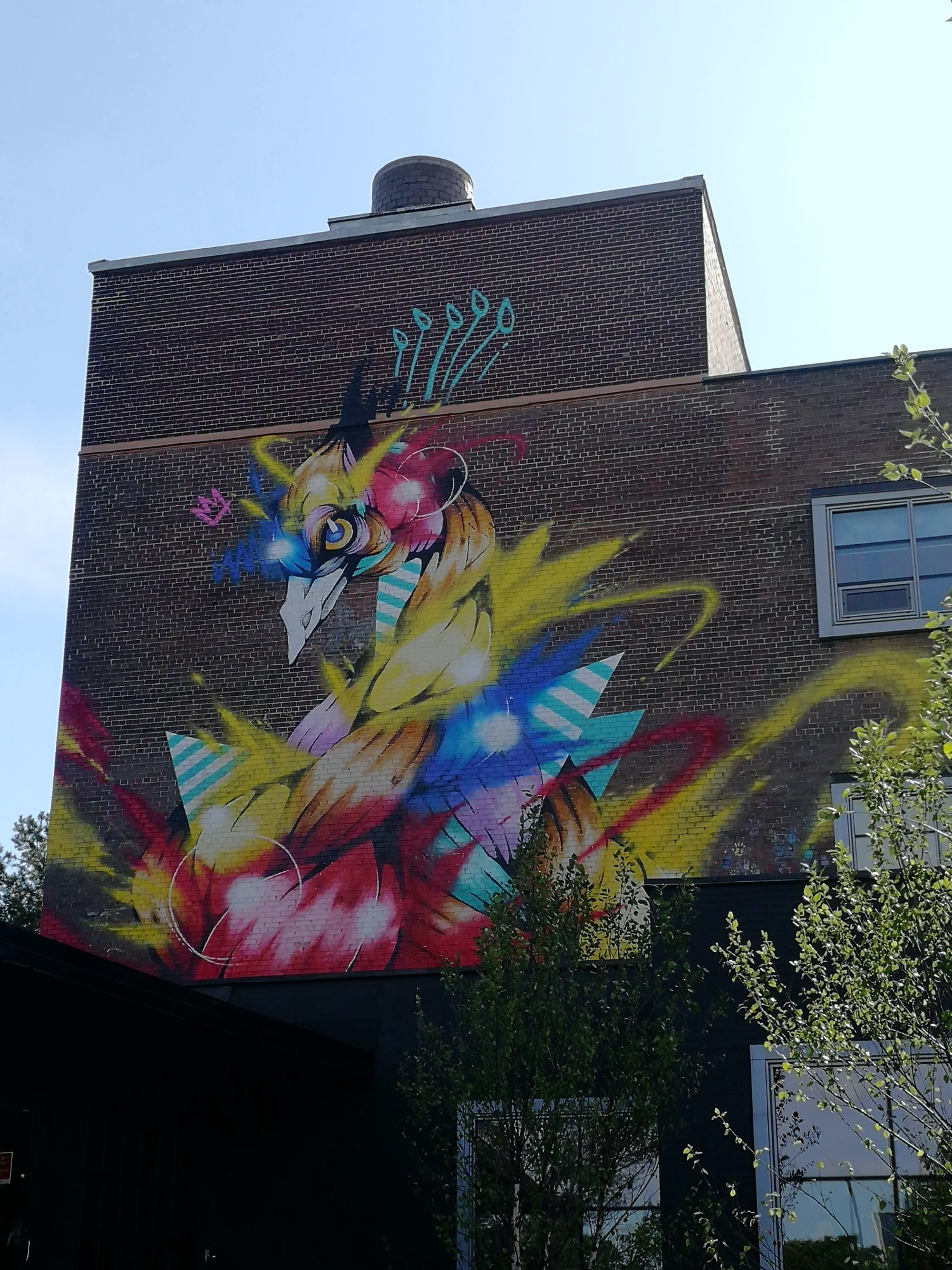 L’oeuvre est de type graffiti. Vous pouvez l’admirer dans la ville de Montréal en Canada et plus précisément ici : 3401 Rue Saint-Jacques, Montréal, QC H4C 1G9, Canada.