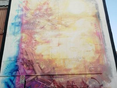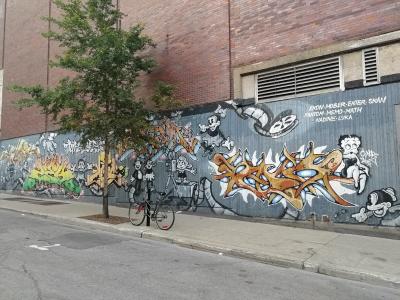 L'oeuvre est de type graffiti. Vous pouvez l'admirer dans la ville de Montréal en Canada et plus précisément ici : 830 Rue Sainte-Catherine E, Montréal, QC H2L 2E2, Canada.