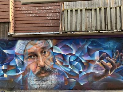 L'oeuvre est de type graffiti. Vous pouvez l'admirer dans la ville de Toronto en Canada et plus précisément ici : 52 Kensington Ave, Toronto, ON M5T 2K1, Canada.