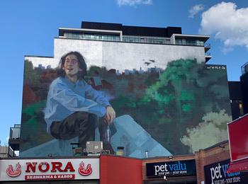 L’oeuvre est de type graffiti. Vous pouvez l’admirer dans la ville de Toronto en Canada et plus précisément ici : 341 College St, Toronto, ON M5T 1S2, Canada.