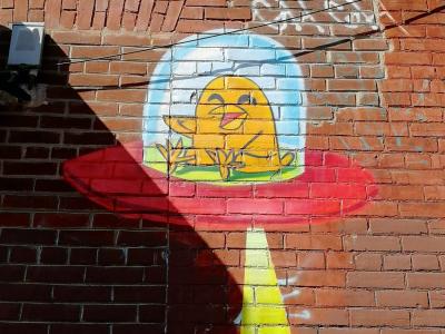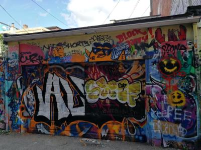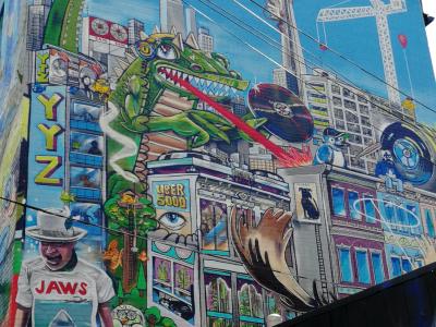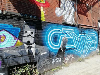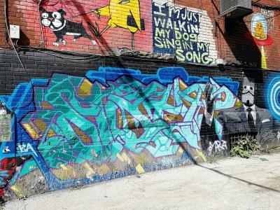 L'oeuvre est de type graffiti. Vous pouvez l'admirer dans la ville de Toronto en Canada et plus précisément ici : 530 R Richmond St W, Toronto, ON M5V 1Y4, Canada.