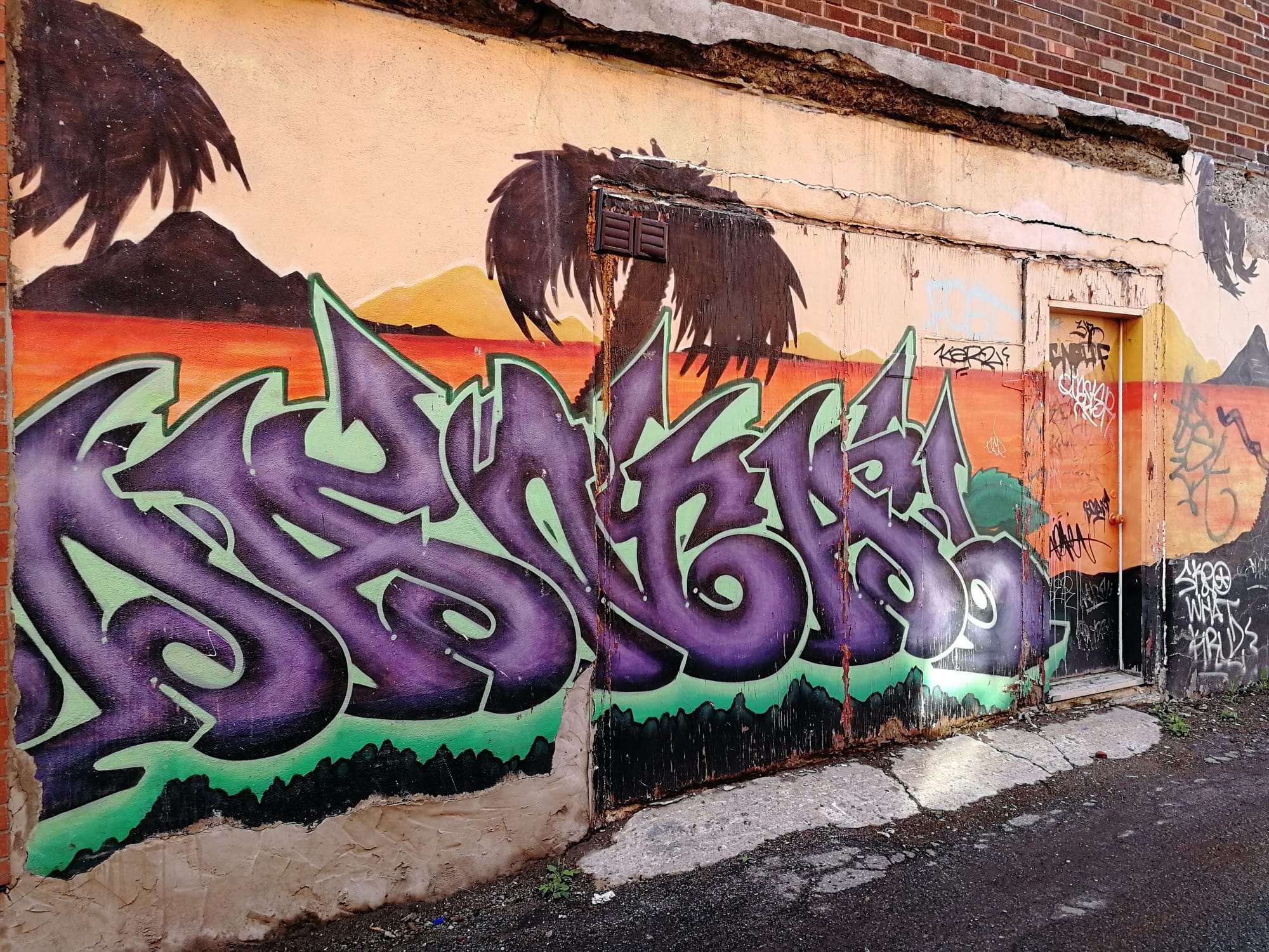 L’oeuvre est de type graffiti. Vous pouvez l’admirer dans la ville de Montréal en Canada et plus précisément ici : 5351 B 5e Avenue, Montréal, QC H1Y 2S6, Canada.