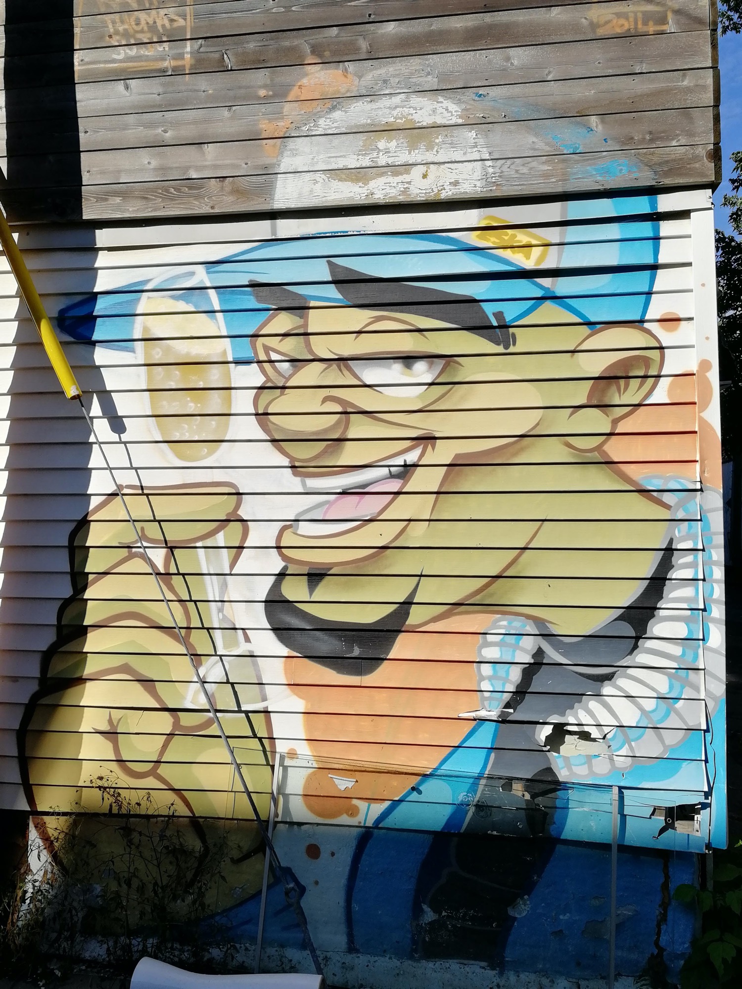 L’oeuvre est de type graffiti. Vous pouvez l’admirer dans la ville de Montréal en Canada et plus précisément ici : 2915 Avenue Laurier E, Montréal, QC H1Y 1Z5, Canada.