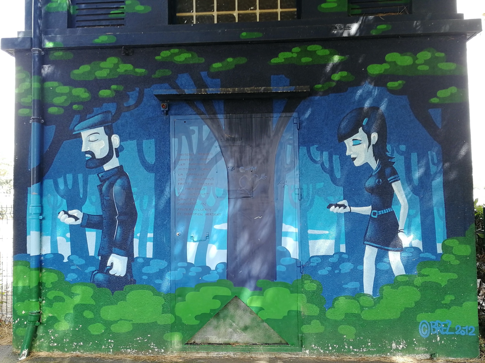 L’oeuvre est de type graffiti. Vous pouvez l’admirer dans la ville de Rennes en France et plus précisément ici : 215 Rue de Vern, 35200 Rennes, France.