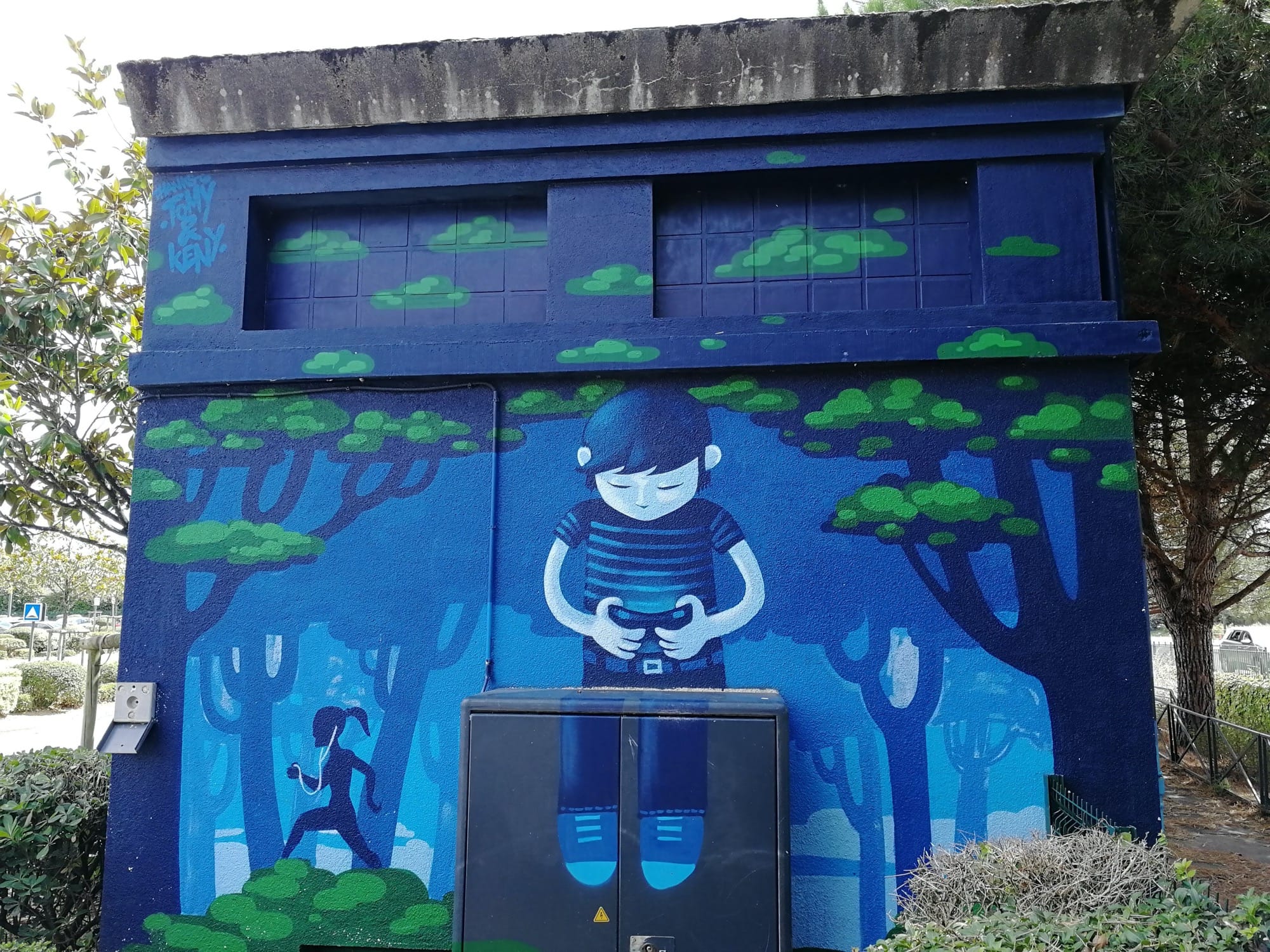L’oeuvre est de type graffiti. Vous pouvez l’admirer dans la ville de Rennes en France et plus précisément ici : 215 Rue de Vern, 35200 Rennes, France.