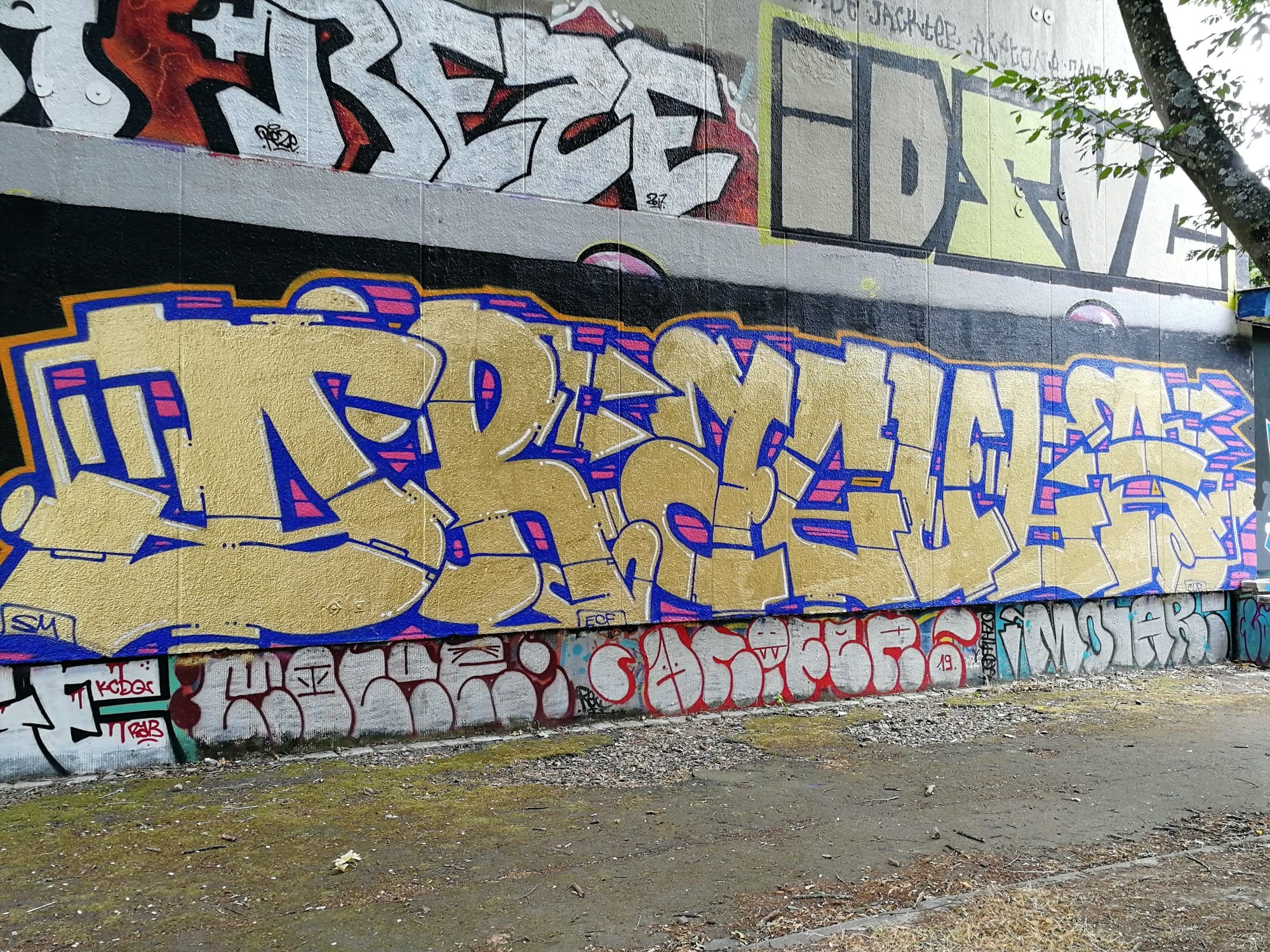 L’oeuvre est de type graffiti. Vous pouvez l’admirer dans la ville de Rennes en France et plus précisément ici : 14 Square Yves Montand, 35000 Rennes, France.