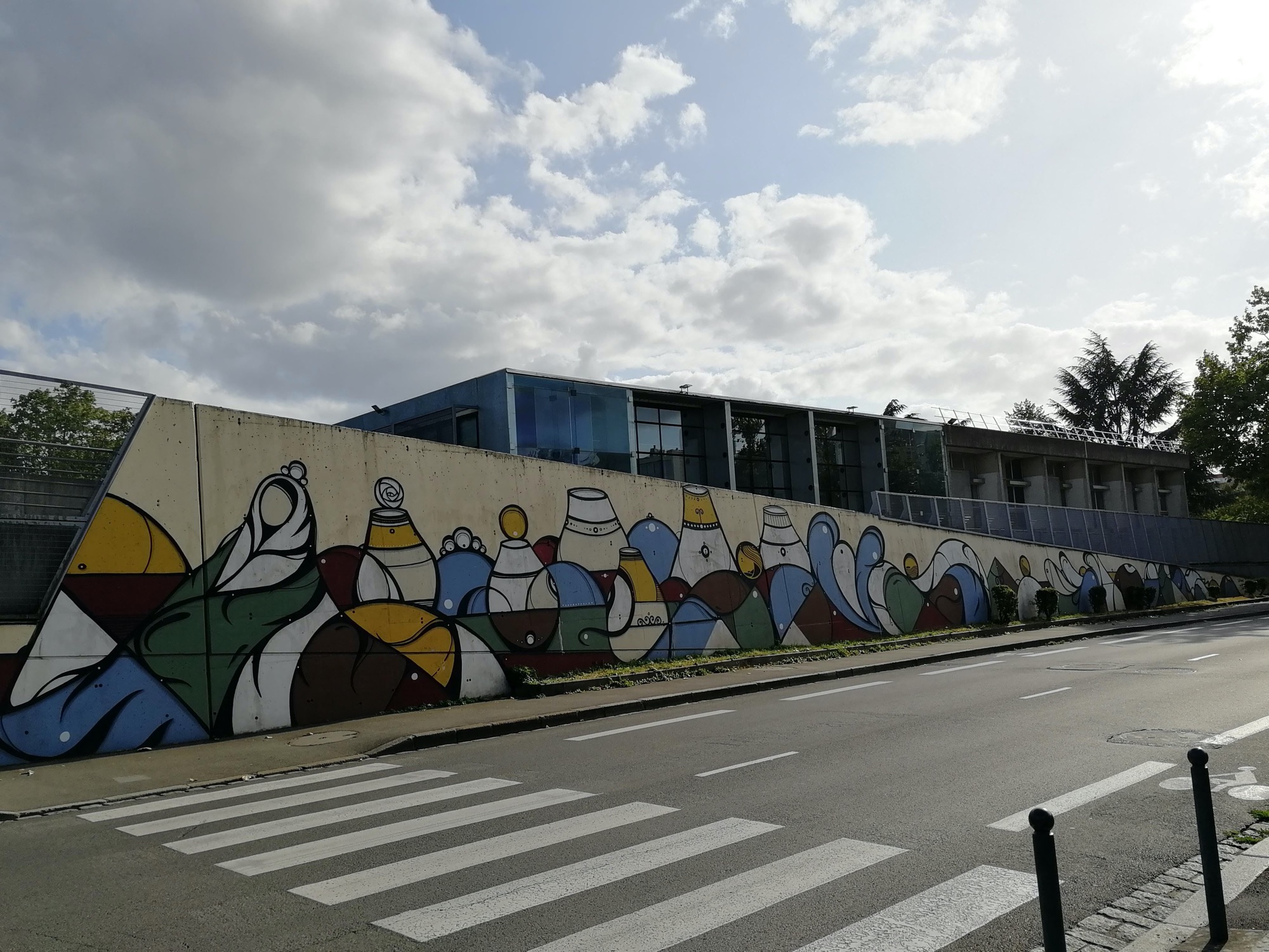 L’oeuvre est de type graffiti. Vous pouvez l’admirer dans la ville de Rennes en France et plus précisément ici : 7 Rue Pierre Jean Gineste, 35000 Rennes, France.