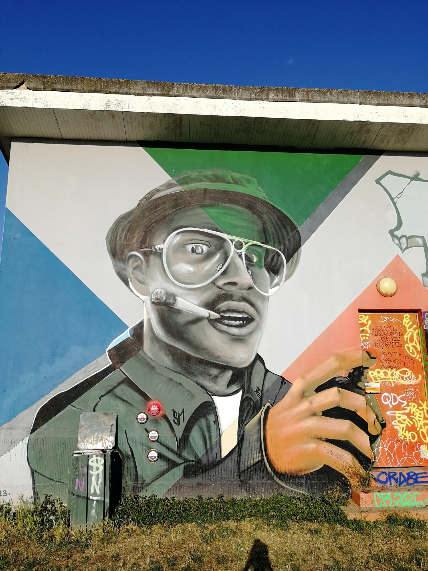 L’oeuvre est de type graffiti. Vous pouvez l’admirer dans la ville de Rennes en France et plus précisément ici : 12 Rue Jack Kerouac, 35700 Rennes, France.