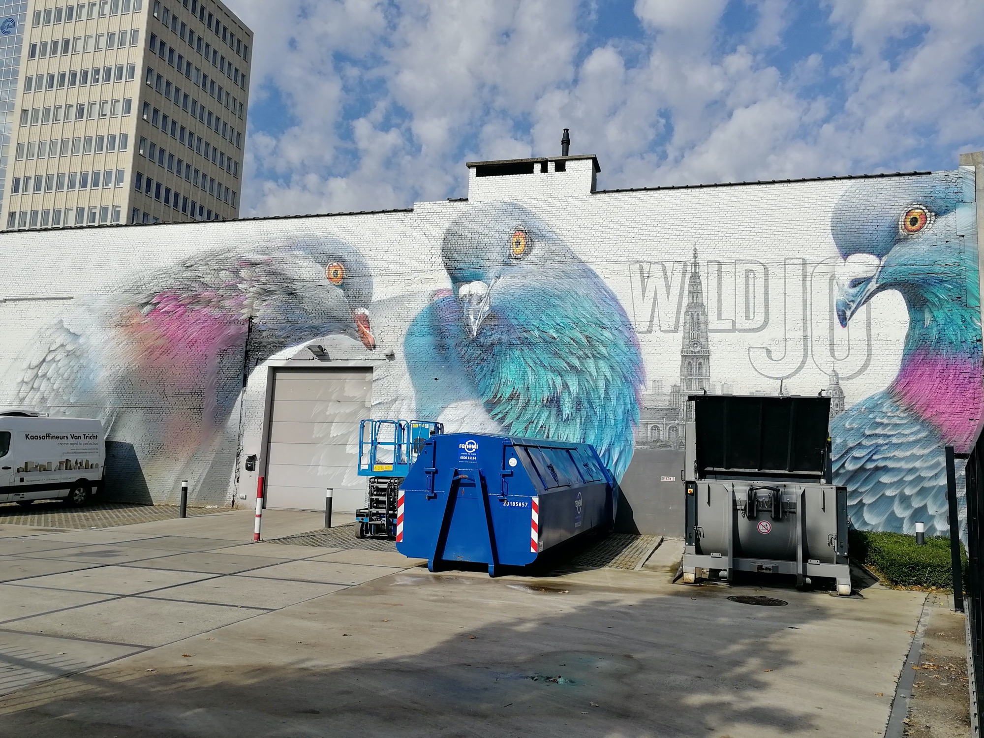 L’oeuvre Pigeons est de type graffiti. Vous pouvez l’admirer dans la ville de Antwerpen en Belgium et plus précisément ici : Haringrodestraat h150, 2018 Antwerpen, Belgique.