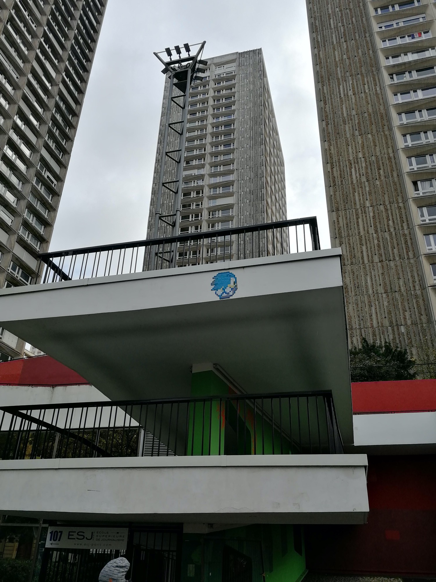 L’oeuvre est de type mosaic. Vous pouvez l’admirer dans la ville de Paris en France et plus précisément ici : 47 Rue Baudricourt, 75013 Paris, France.