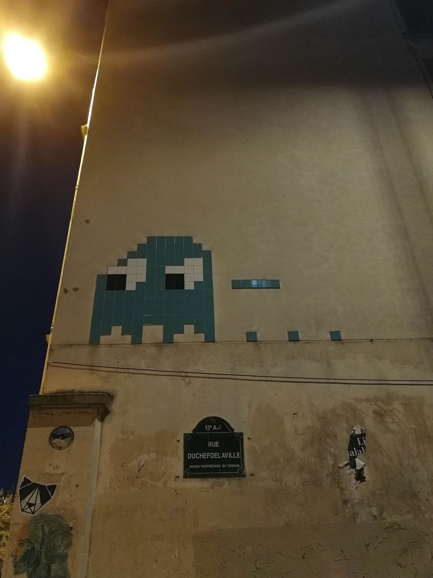 L’oeuvre est de type mosaic. Vous pouvez l’admirer dans la ville de Paris en France et plus précisément ici : 153 Rue du Chevaleret, 75013 Paris, France.