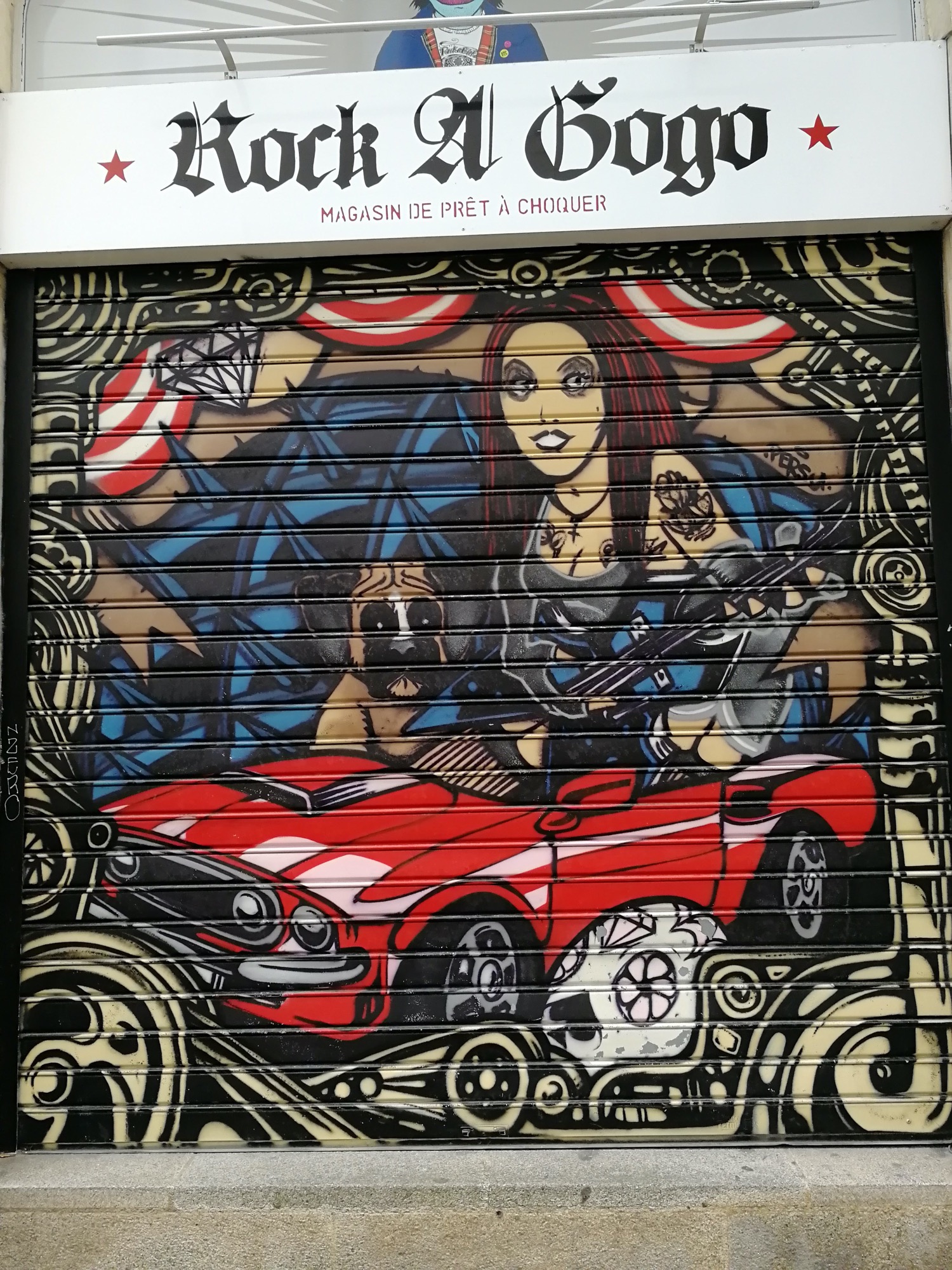L’oeuvre Rock à gogo est de type graffiti. Vous pouvez l’admirer dans la ville de Nantes en France et plus précisément ici : 11 Rue Paré, 44000 Nantes, France.