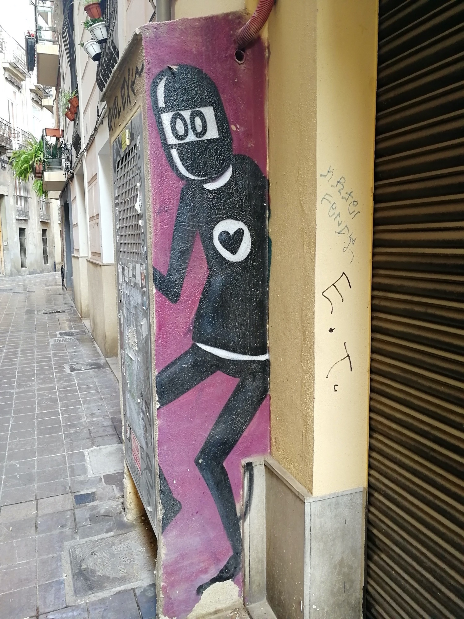 L’oeuvre est de type graffiti. Vous pouvez l’admirer dans la ville de València en Spain et plus précisément ici : Carrer del Tossalet, 4, 46003 València, Valencia, Espagne.