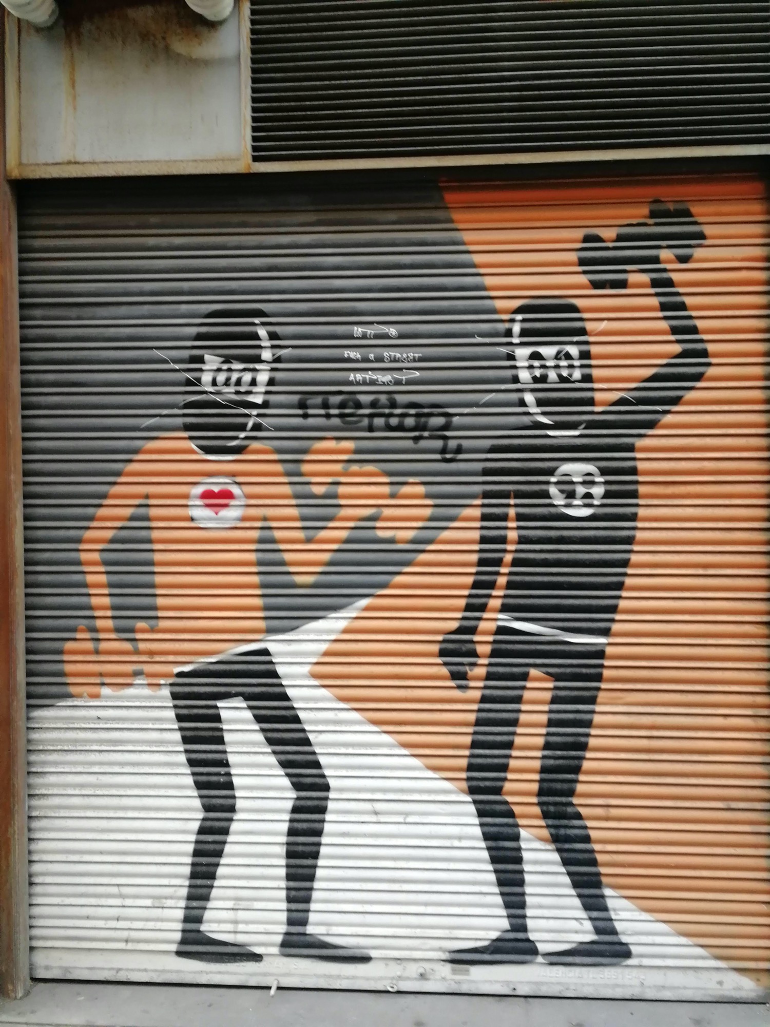L’oeuvre est de type graffiti. Vous pouvez l’admirer dans la ville de València en Spain et plus précisément ici : Carrer de Palomar, 17, 46001 València, Valencia, Espagne.