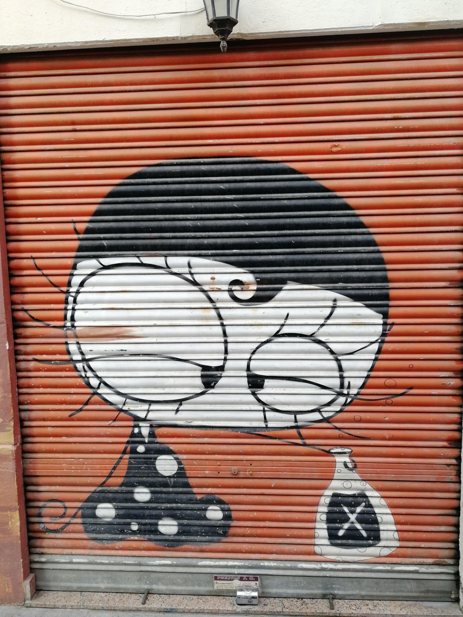L’oeuvre est de type graffiti. Vous pouvez l’admirer dans la ville de València en Spain et plus précisément ici : Carrer de la Creu, 2, 46003 València, Valencia, Espagne.