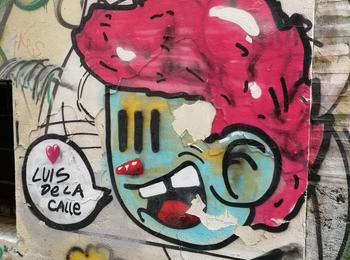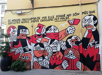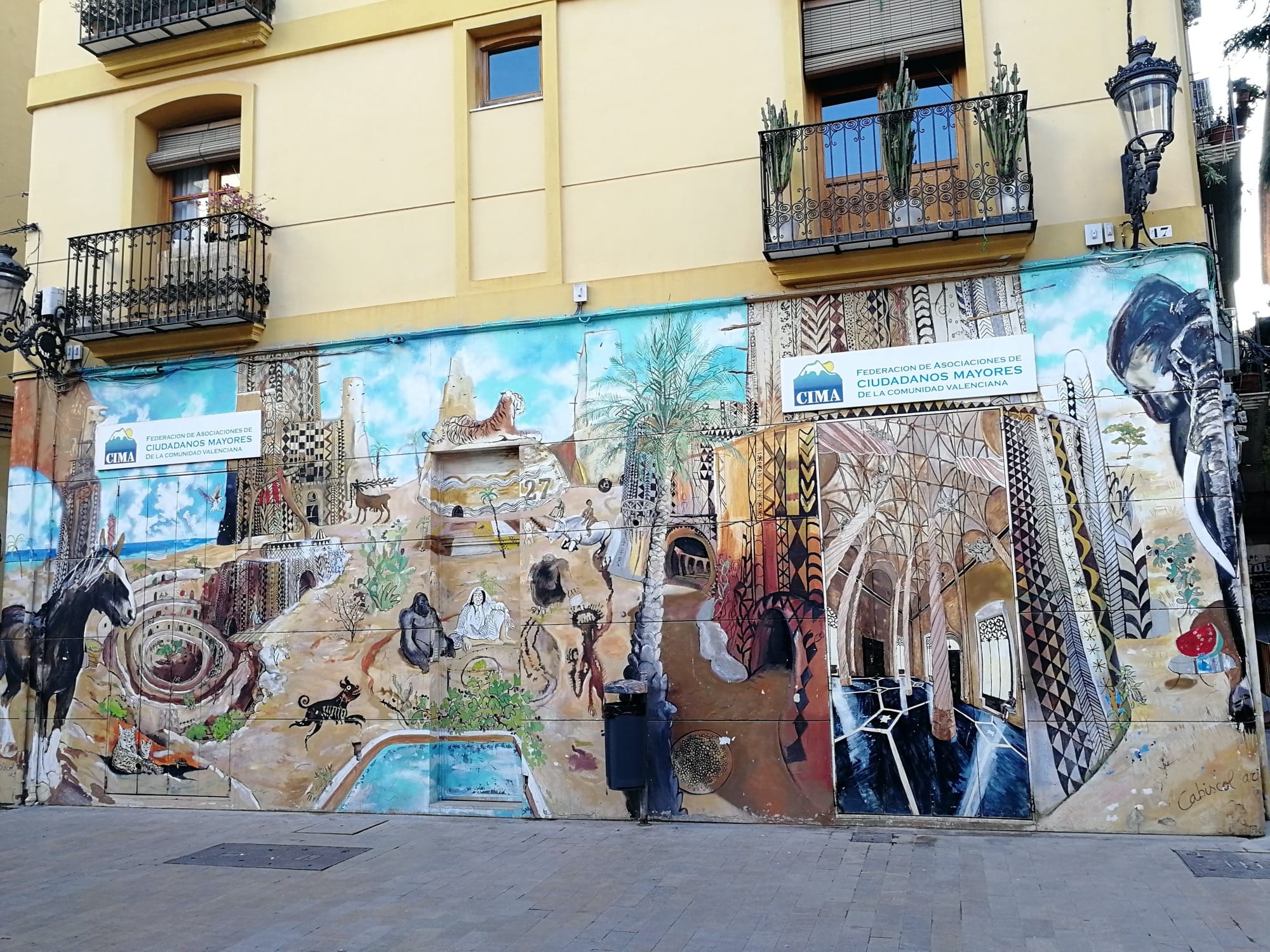 L’oeuvre est de type graffiti. Vous pouvez l’admirer dans la ville de València en Spain et plus précisément ici : Carrer del Pare d'Orfens, 27, 46003 València, Valencia, Espagne.