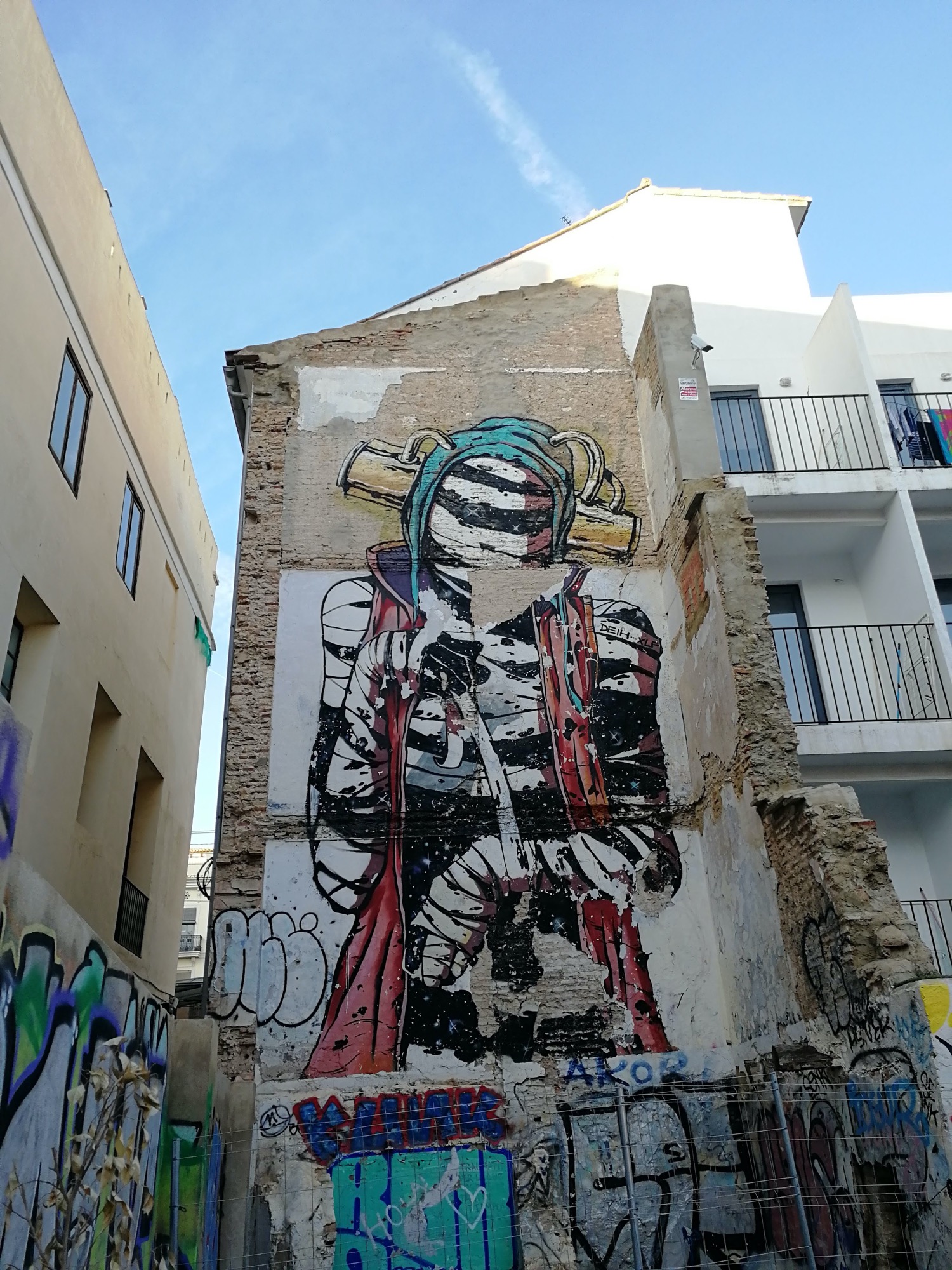 L’oeuvre est de type graffiti. Vous pouvez l’admirer dans la ville de València en Spain et plus précisément ici : Plaça de Tavernes de Valldigna, 2, 46003 València, Valencia, Espagne.