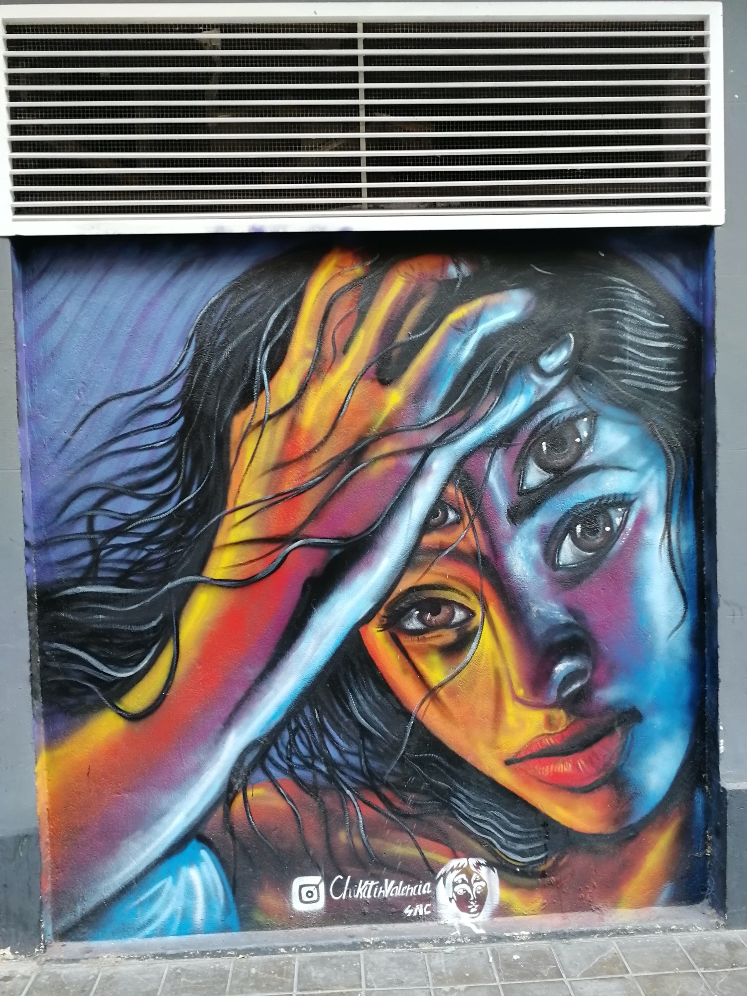 L’oeuvre est de type graffiti. Vous pouvez l’admirer dans la ville de València en Spain et plus précisément ici : Carrer de Santa Cristina, 2, 46003 Valencia, Espagne.
