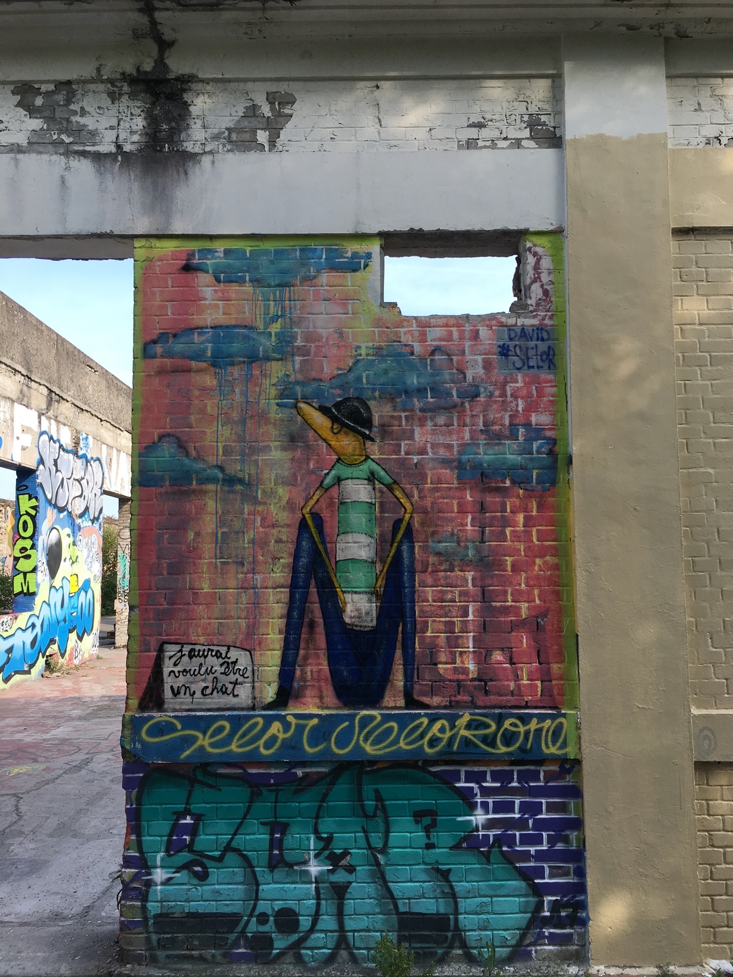 L’oeuvre est de type graffiti. Vous pouvez l’admirer dans la ville de Bordeaux en France et plus précisément ici : Darwin, bat. sud, 87 Quai des Queyries, 33100 Bordeaux, France.