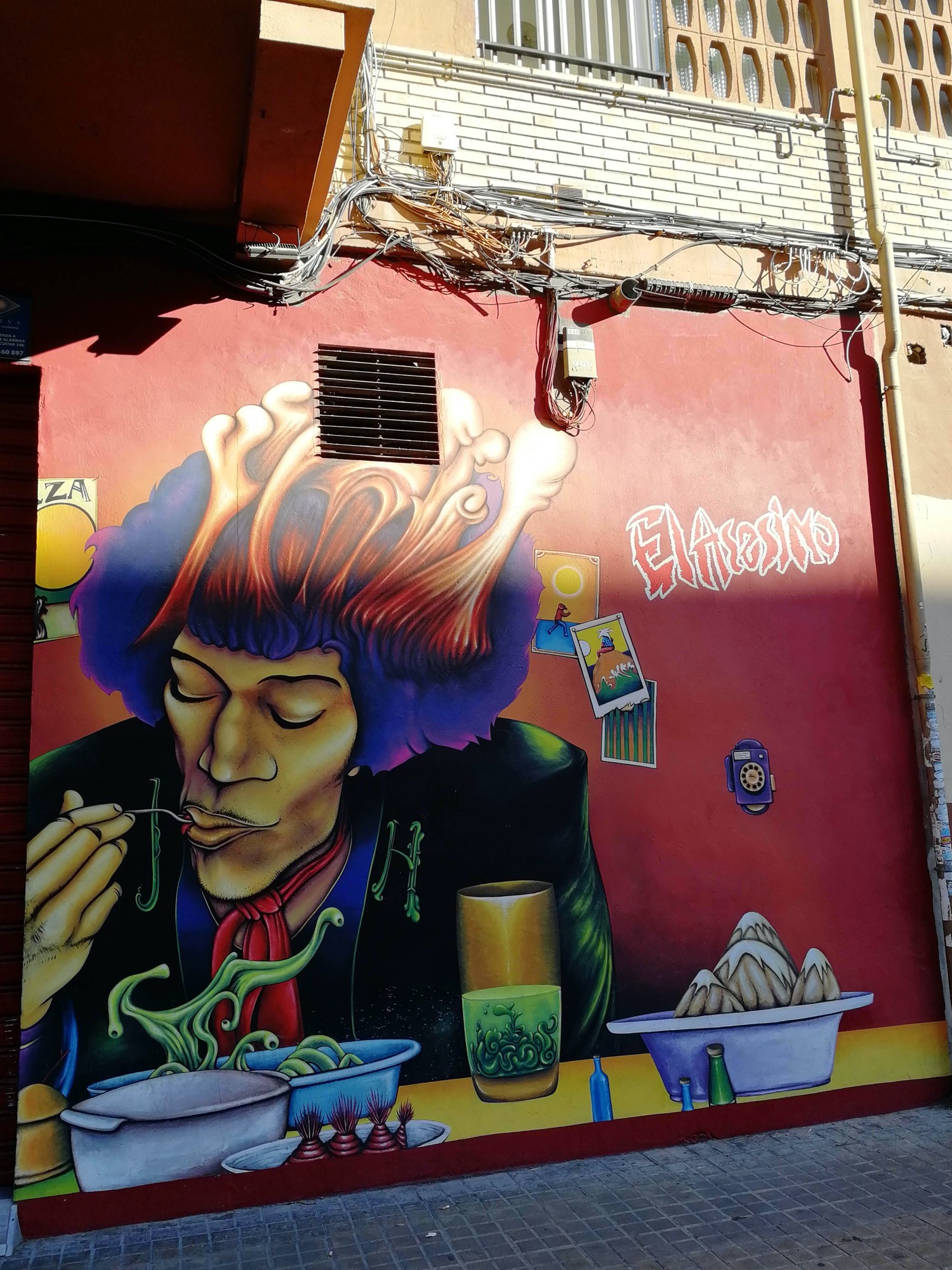 L’oeuvre est de type graffiti. Vous pouvez l’admirer dans la ville de València en Spain et plus précisément ici : Carrer de Campoamor, 37, 46022 València, Valencia, Espagne.