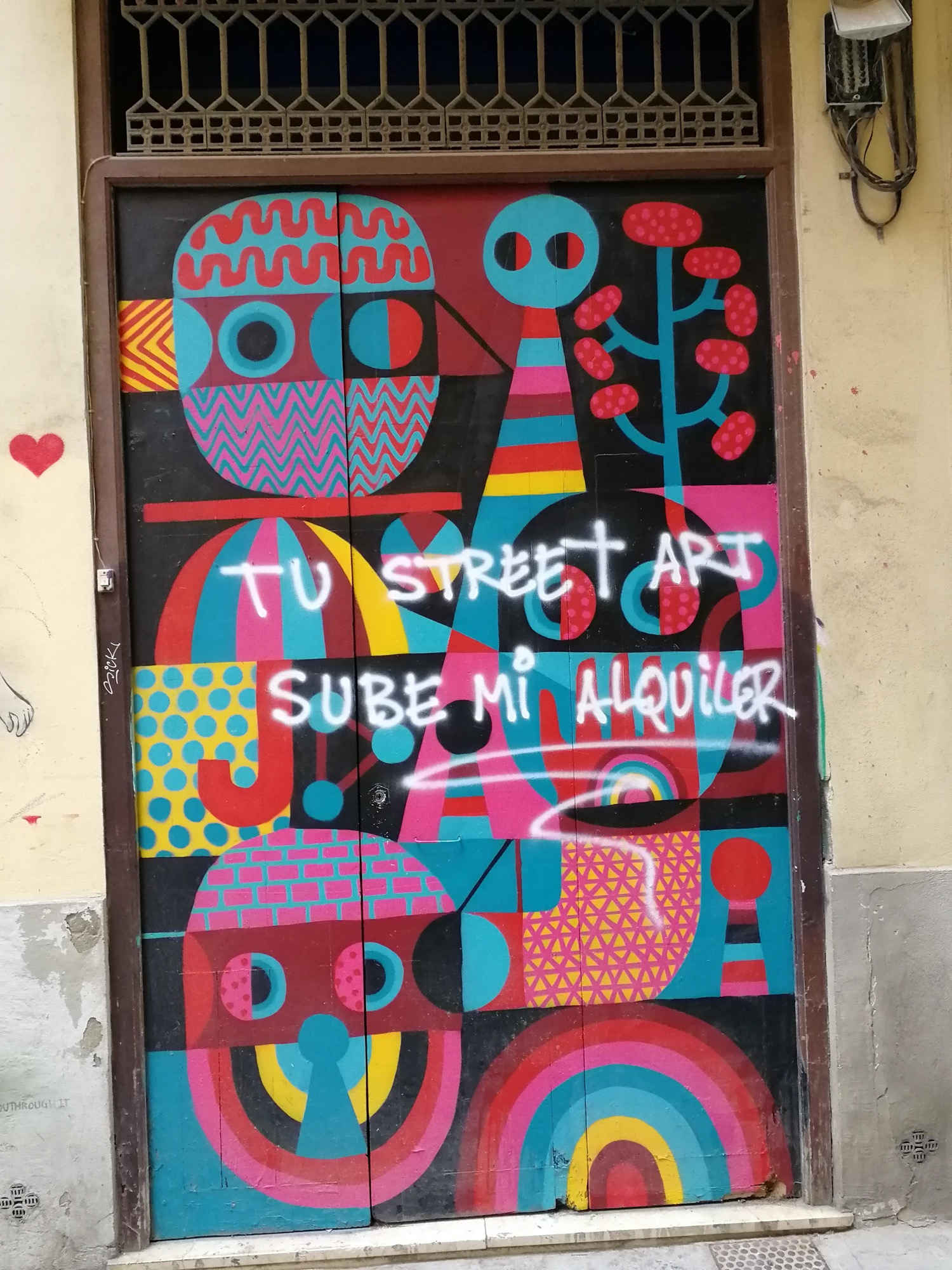 L’oeuvre est de type graffiti. Vous pouvez l’admirer dans la ville de València en Spain et plus précisément ici : Carrer dels Burguerins, 1, 46001 València, Valencia, Espagne.