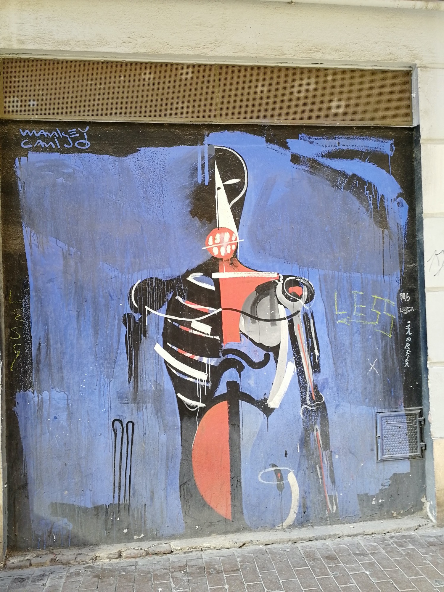 L’oeuvre est de type graffiti. Vous pouvez l’admirer dans la ville de València en Spain et plus précisément ici : Carrer de Santa Teresa, 6, 46001 València, Valencia, Espagne.