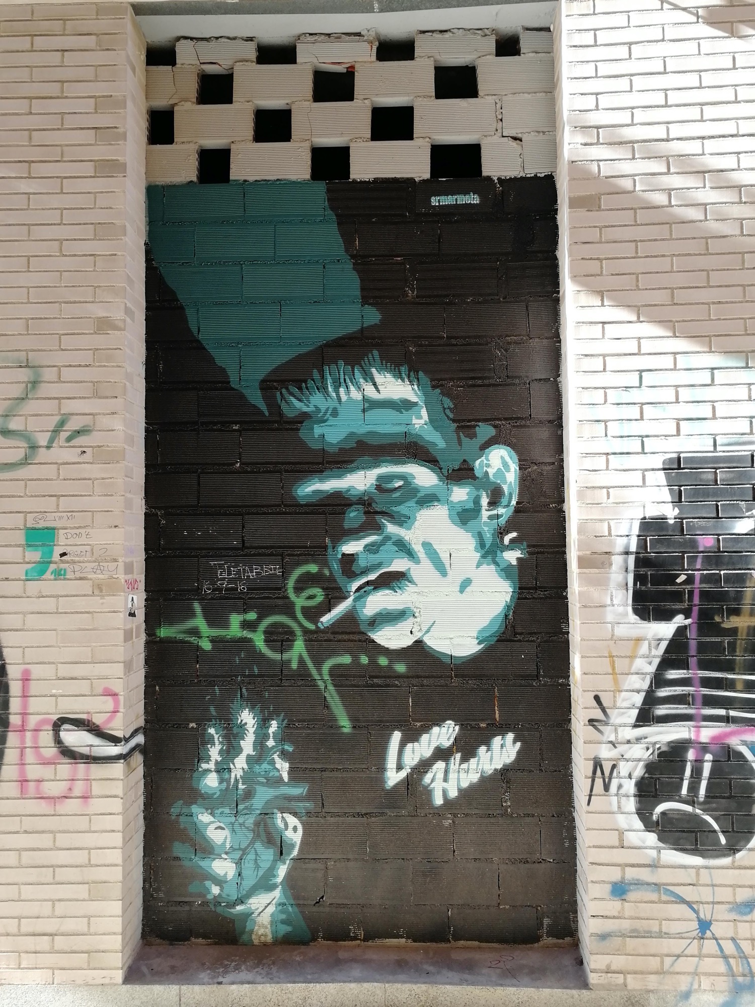 L’oeuvre est de type graffiti. Vous pouvez l’admirer dans la ville de València en Spain et plus précisément ici : Carrer de Villena, 13, 46001 València, Valencia, Espagne.