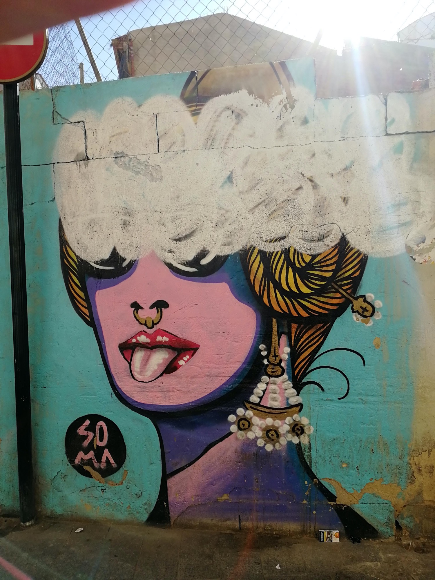 L’oeuvre est de type graffiti. Vous pouvez l’admirer dans la ville de València en Spain et plus précisément ici : Carrer de Vinatea, 1, 46001 València, Valencia, Espagne.