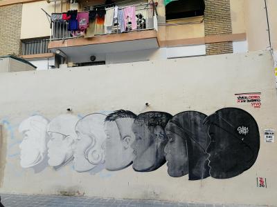 L'oeuvre est de type graffiti. Vous pouvez l'admirer dans la ville de València en Spain et plus précisément ici : Carrer de Zarra, 1, 46022 València, Valencia, Espagne.