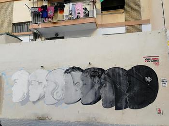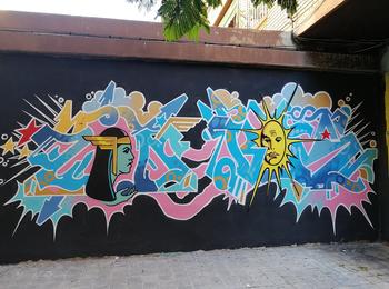 L’oeuvre est de type graffiti. Vous pouvez l’admirer dans la ville de València en Spain et plus précisément ici : Carrer de Zarra, 1, 46022 València, Valencia, Espagne.