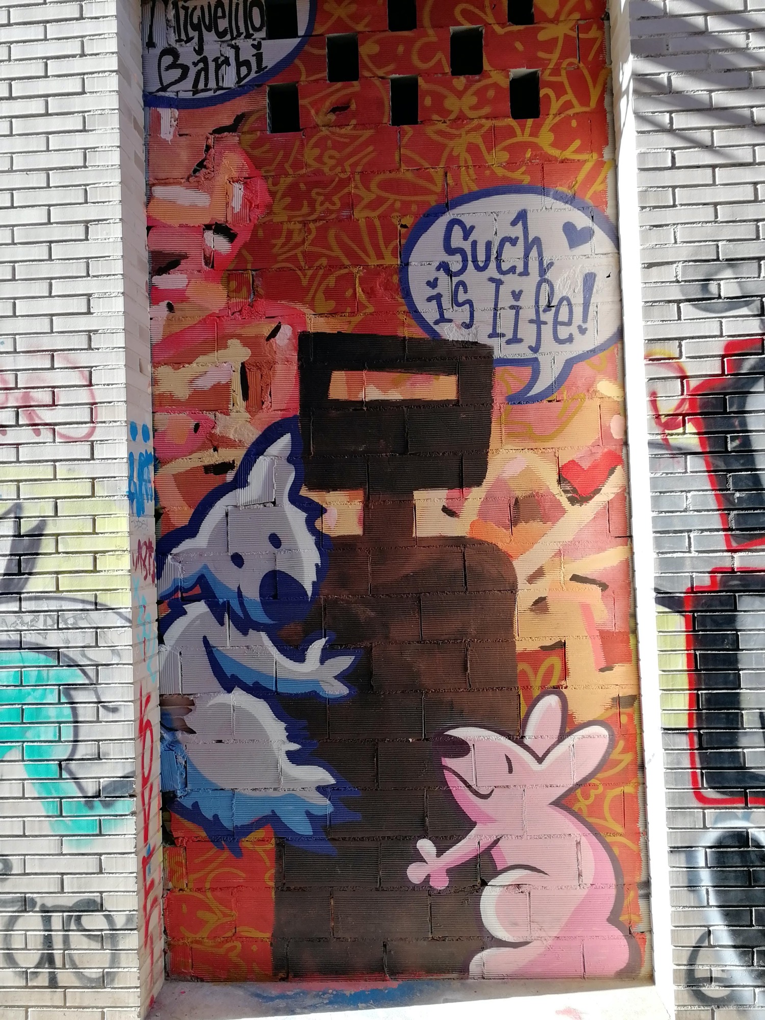 L’oeuvre est de type graffiti. Vous pouvez l’admirer dans la ville de València en Spain et plus précisément ici : Carrer de Villena, 15, 46001 València, Valencia, Espagne.