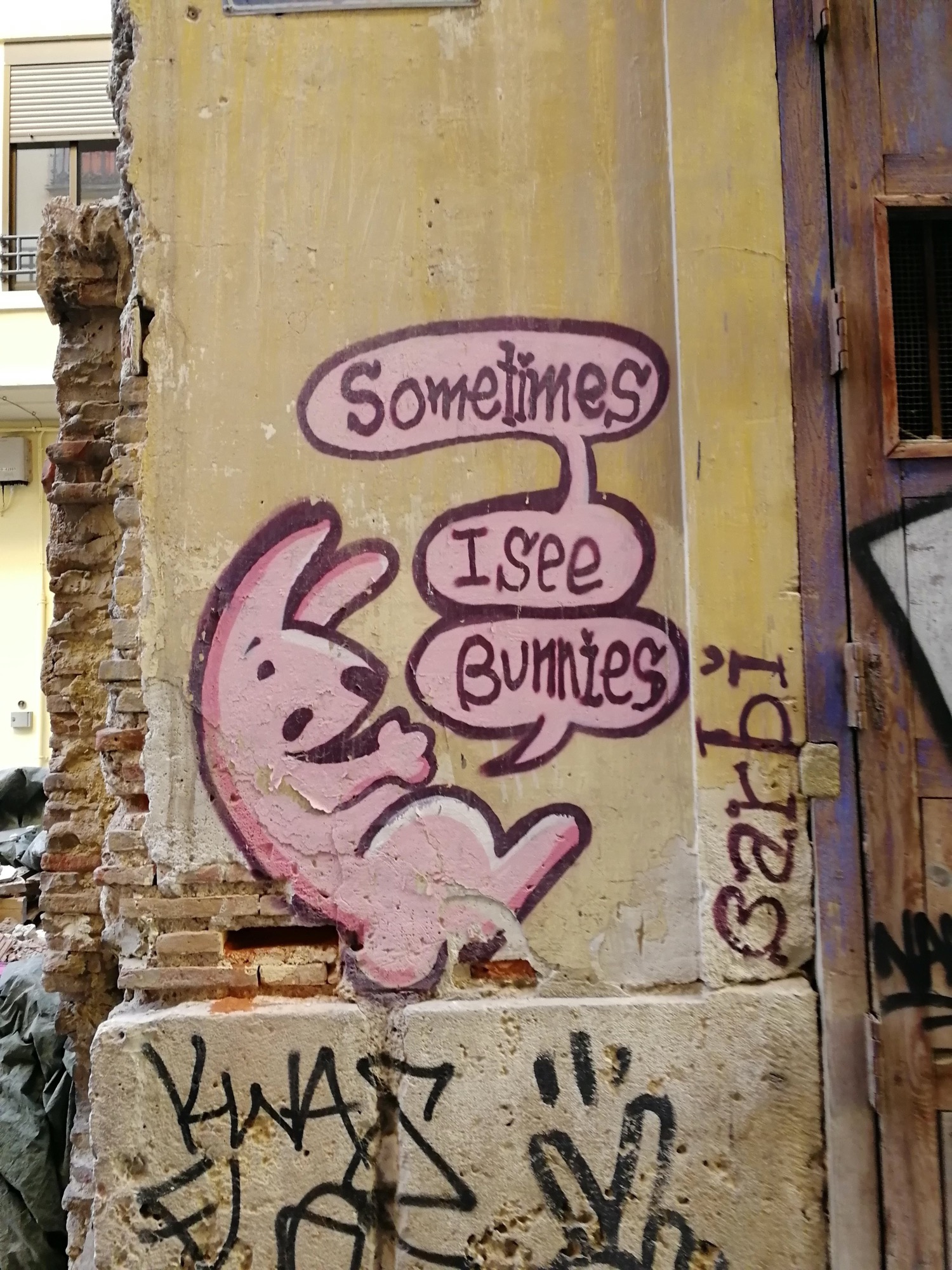 L’oeuvre est de type graffiti. Vous pouvez l’admirer dans la ville de València en Spain et plus précisément ici : Carrer de Recared, 31, 46001 València, Valencia, Espagne.