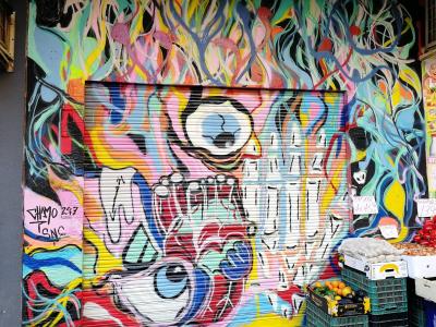 L'oeuvre est de type graffiti. Vous pouvez l'admirer dans la ville de València en Spain et plus précisément ici : Carrer de Zarra, 67, 46022 València, Valencia, Espagne.