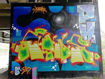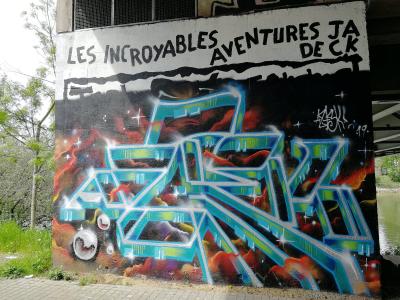 L'oeuvre est de type graffiti. Vous pouvez l'admirer dans la ville de Nantes en France et plus précisément ici : Bassin du Tripode, 11 Prom. Europa, 44200 Nantes, France.
