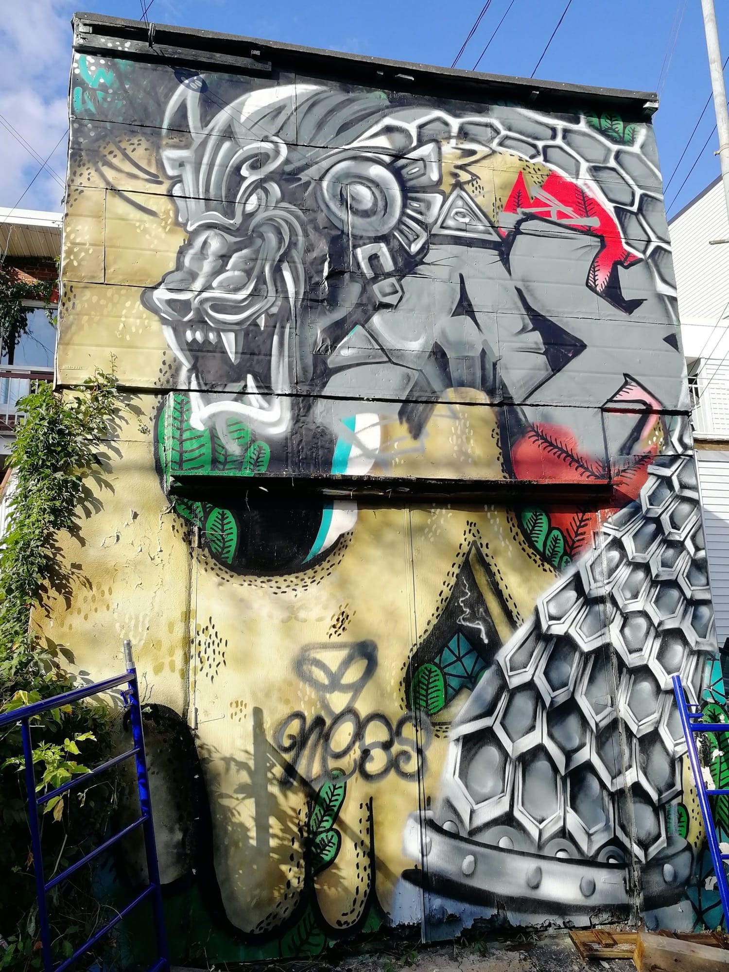 L’oeuvre est de type graffiti. Vous pouvez l’admirer dans la ville de Montréal en Canada et plus précisément ici : 5143 7e Avenue, Montréal, QC H1Y 2N2, Canada.